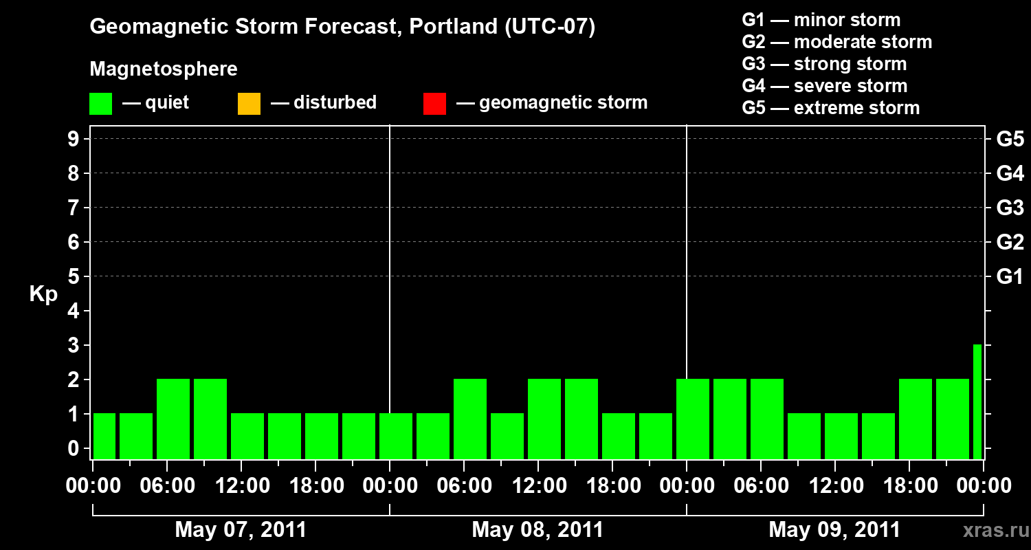 Geomagnetic storm forecast in Portland for May 07, 2011