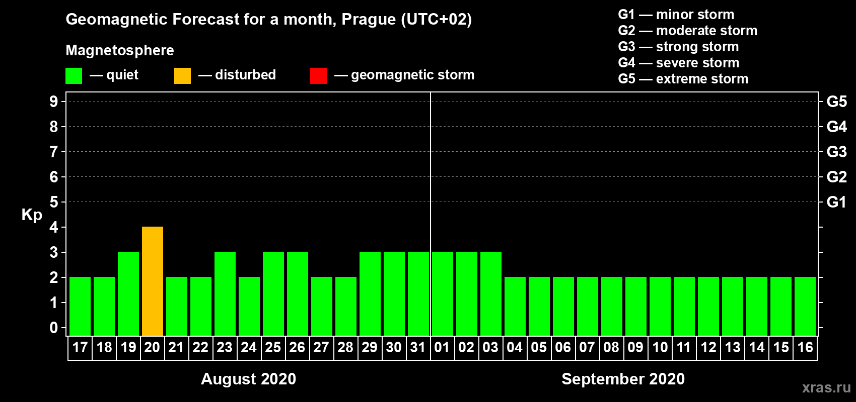 Geomagnetic activity forecast in Prague — Aug 17, 2020