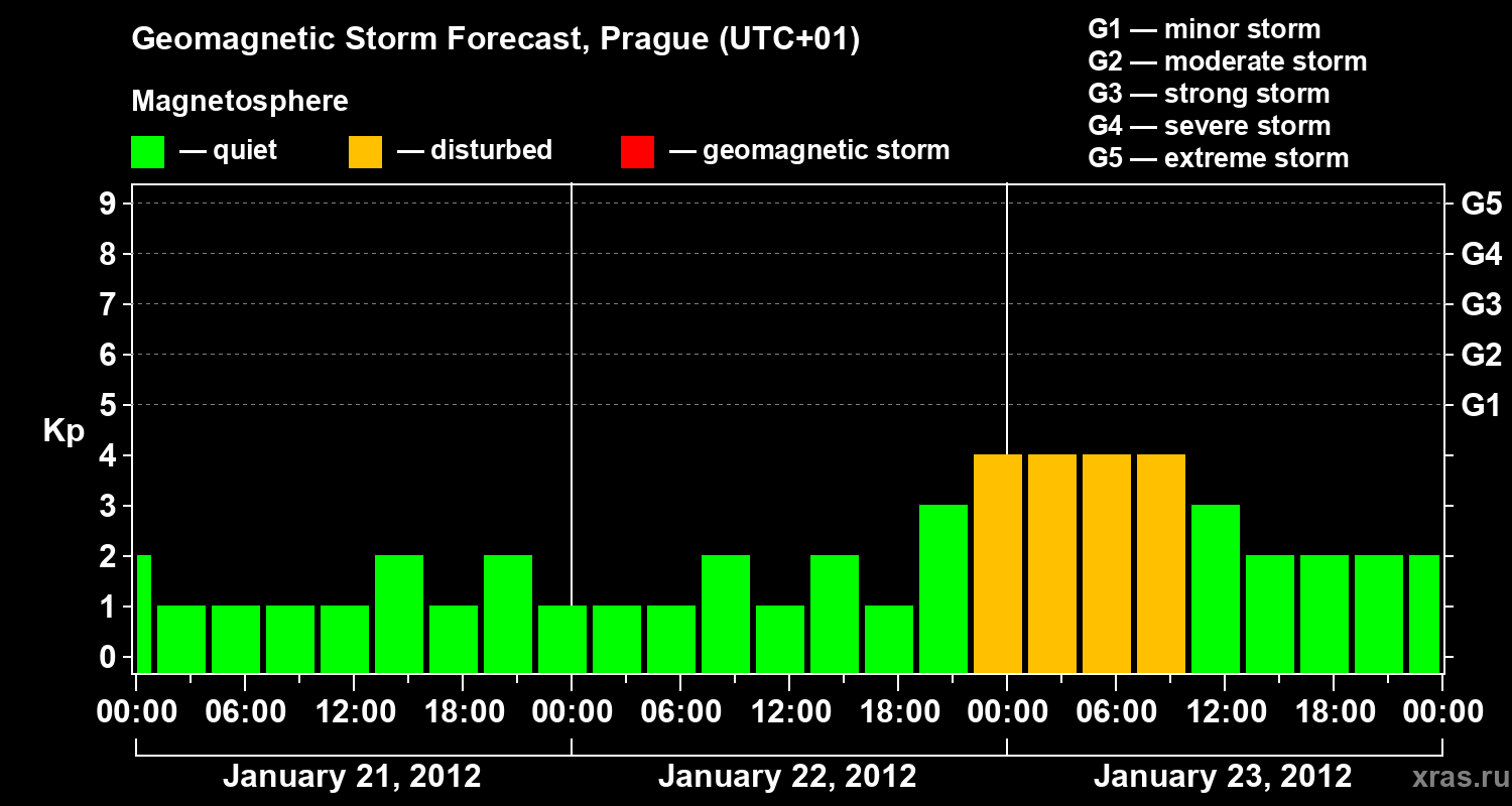 Geomagnetic storm forecast in Prague for Jan 21, 2012