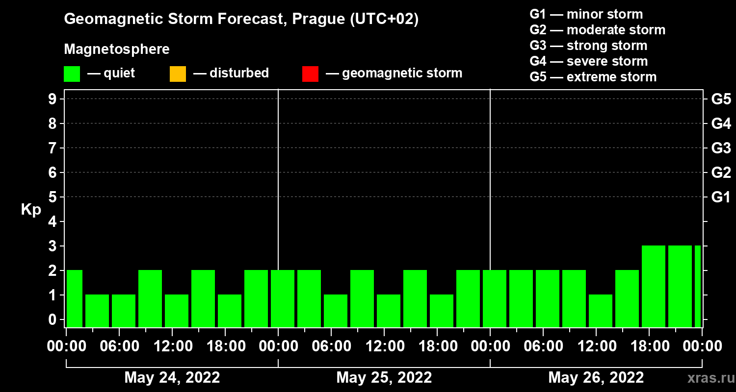 Geomagnetic activity forecast in Prague — May 24, 2022