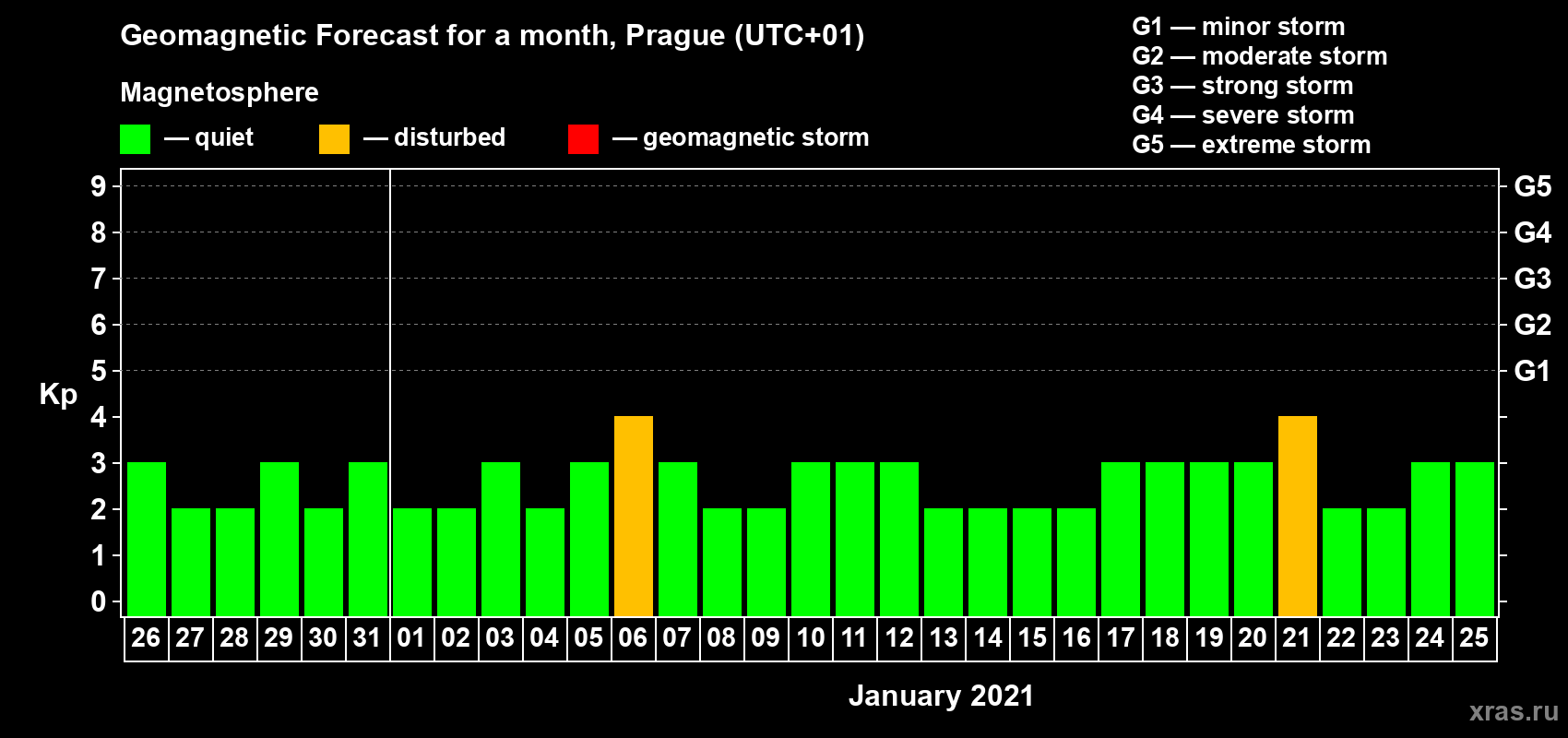 Geomagnetic activity forecast in Prague — Dec 26, 2020