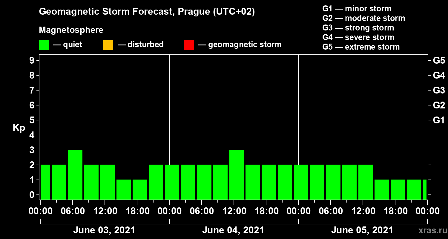 Geomagnetic activity forecast in Prague — Jun 03, 2021