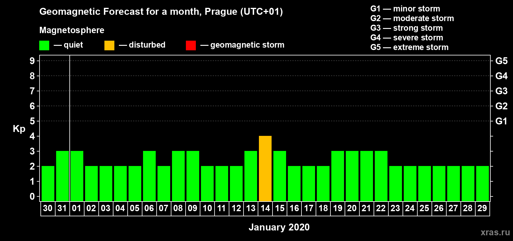 Geomagnetic activity forecast in Prague — Dec 30, 2019