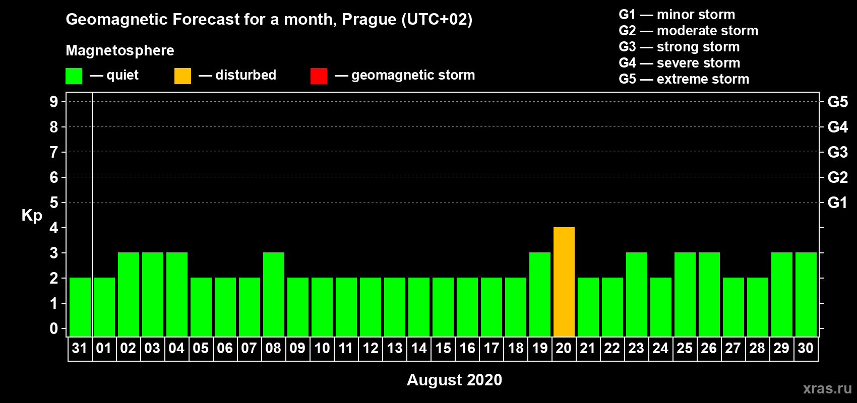 Geomagnetic activity forecast in Prague — Jul 31, 2020