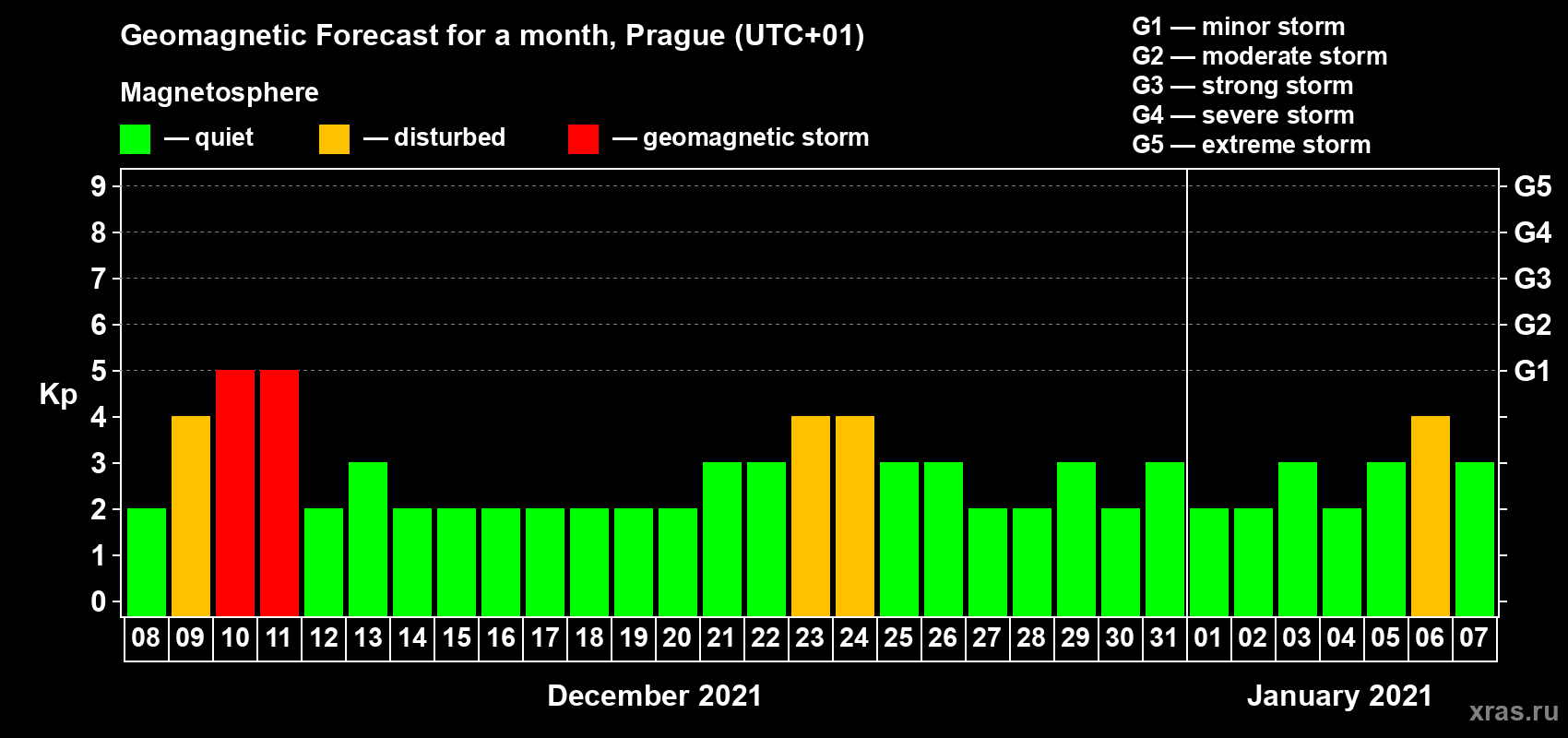 Geomagnetic activity forecast in Prague — Dec 08, 2020