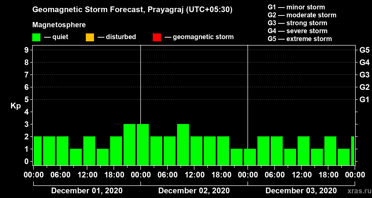 Geomagnetic activity forecast in Prayagraj — Dec 01, 2020