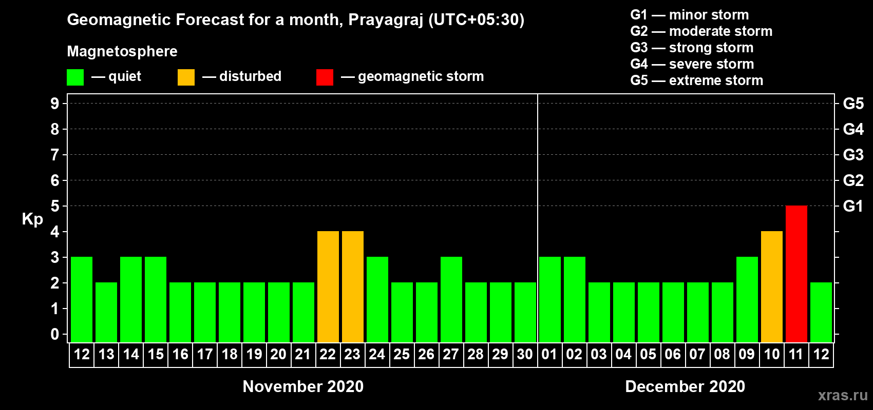 Geomagnetic activity forecast in Prayagraj — Nov 12, 2020
