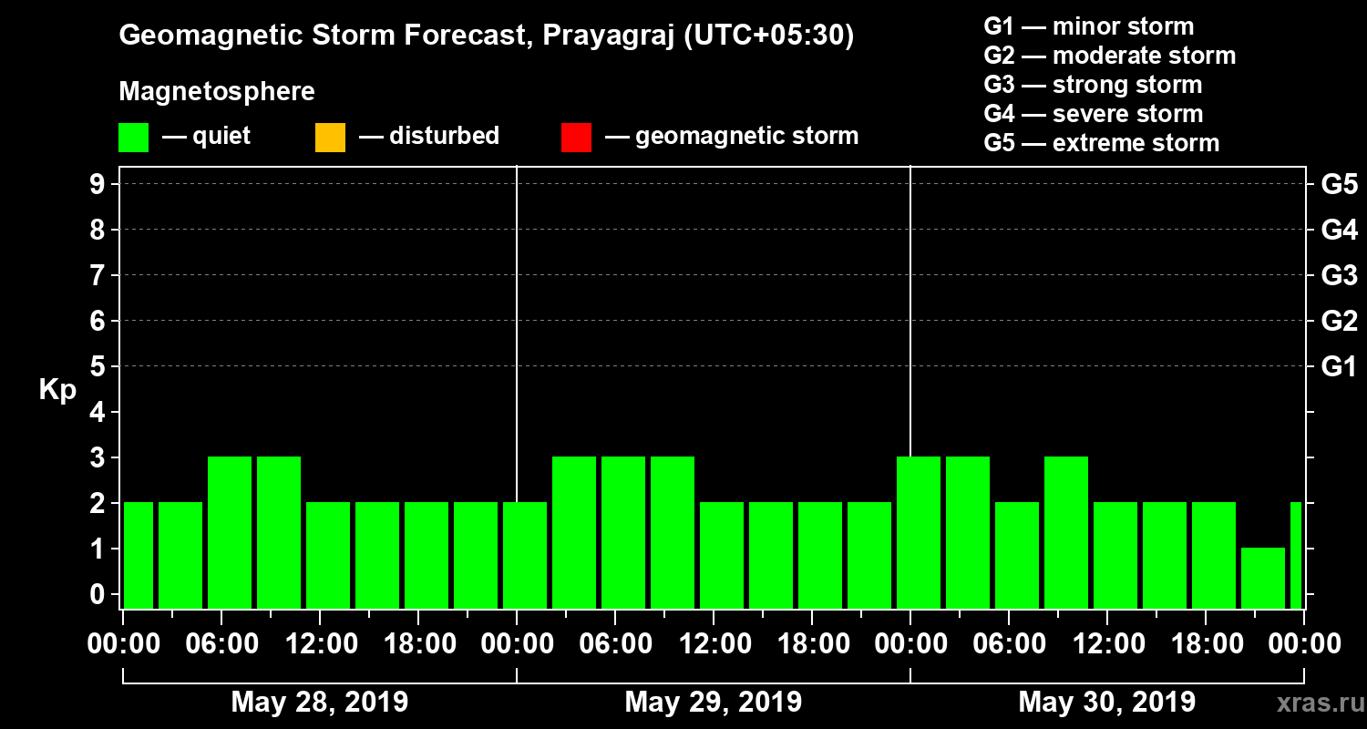 Geomagnetic activity forecast in Prayagraj — May 28, 2019