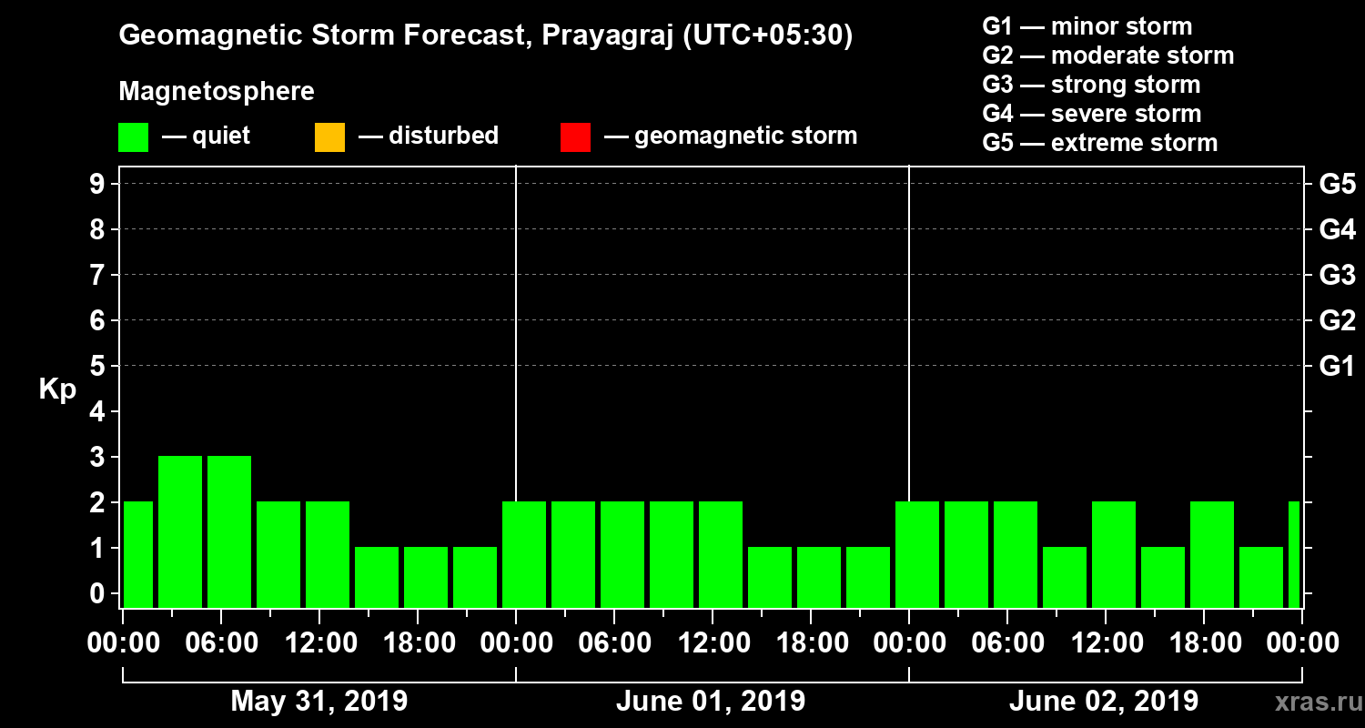 Geomagnetic activity forecast in Prayagraj — May 31, 2019