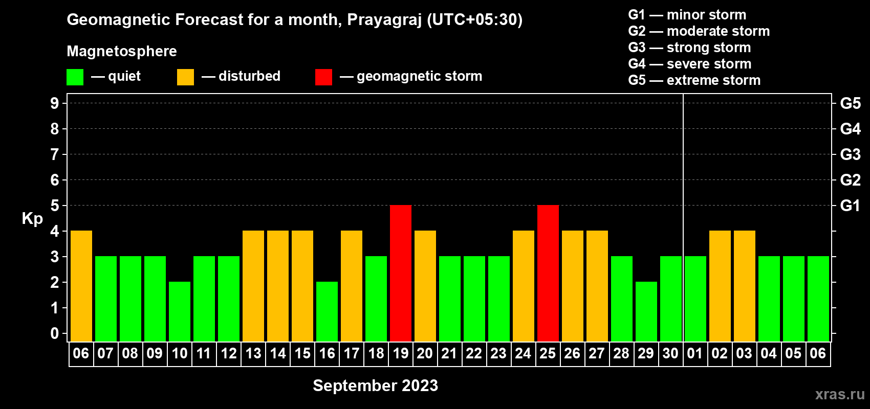 Geomagnetic activity forecast in Prayagraj — Sep 06, 2023
