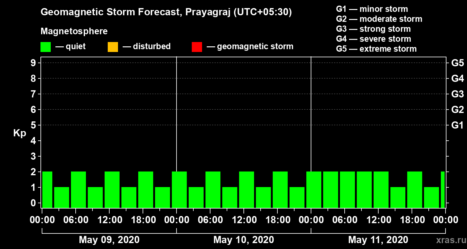 Geomagnetic activity forecast in Prayagraj — May 09, 2020