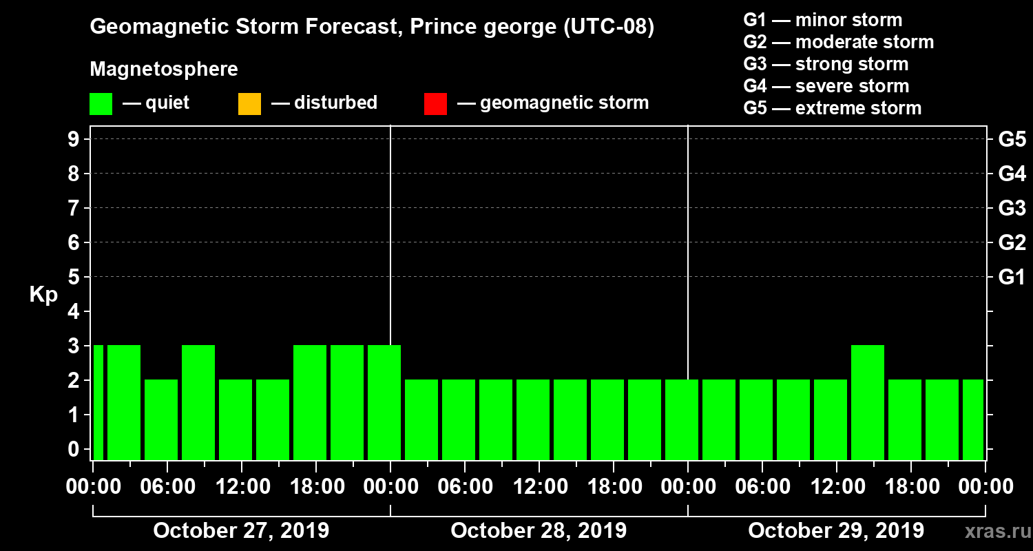 Geomagnetic storm forecast in Prince george for Oct 27, 2019
