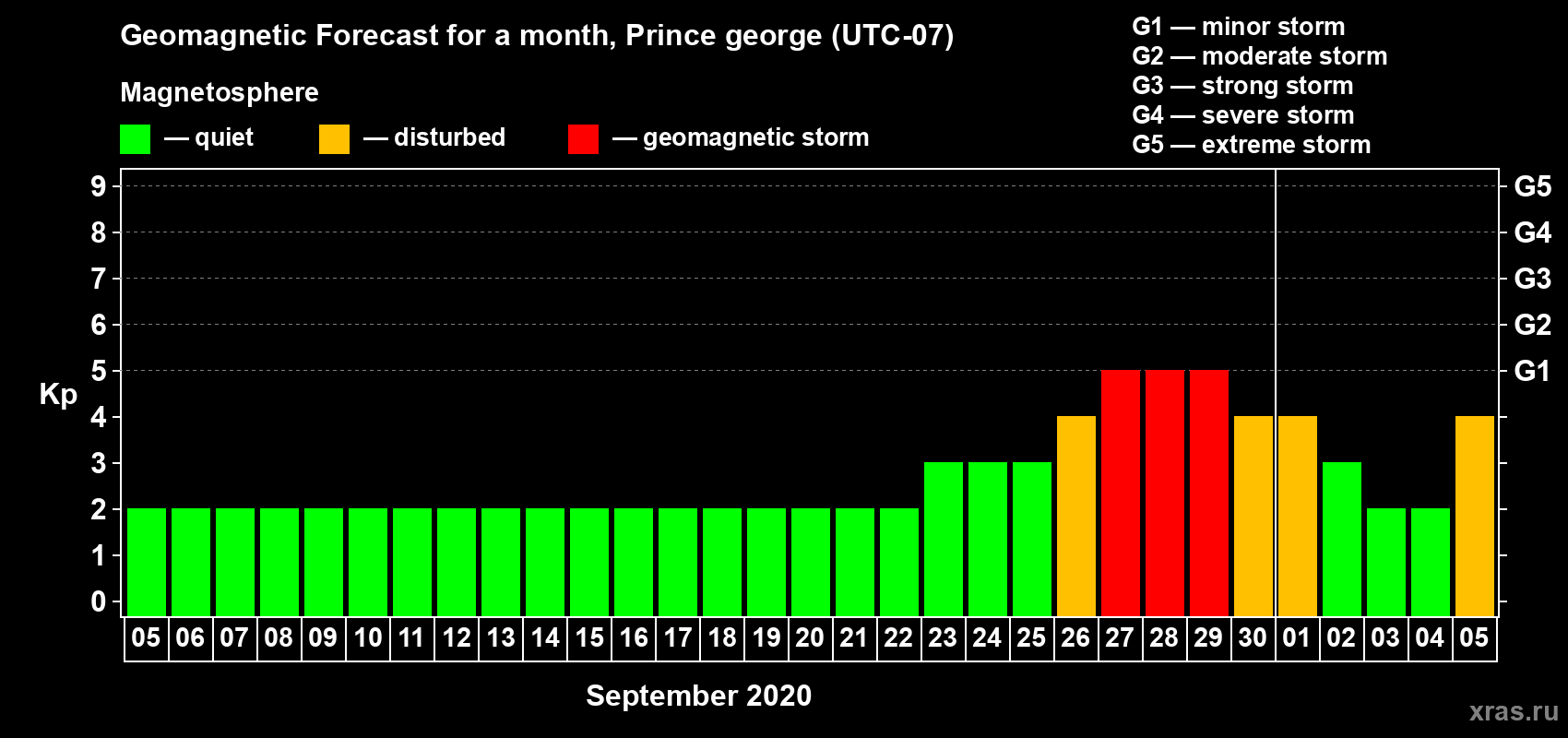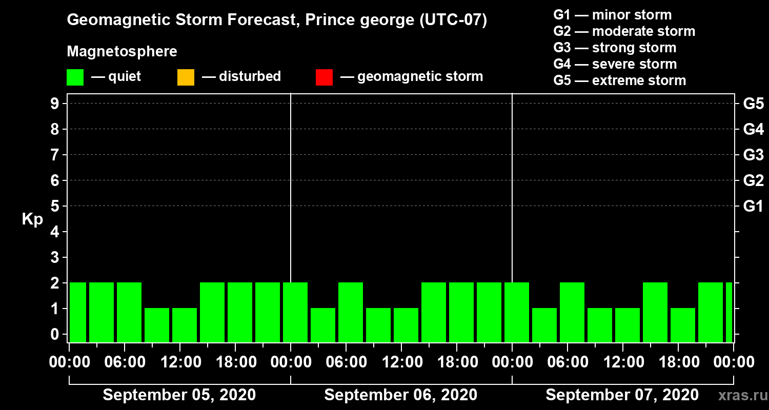 Geomagnetic storm forecast in Prince george for Sep 05, 2020