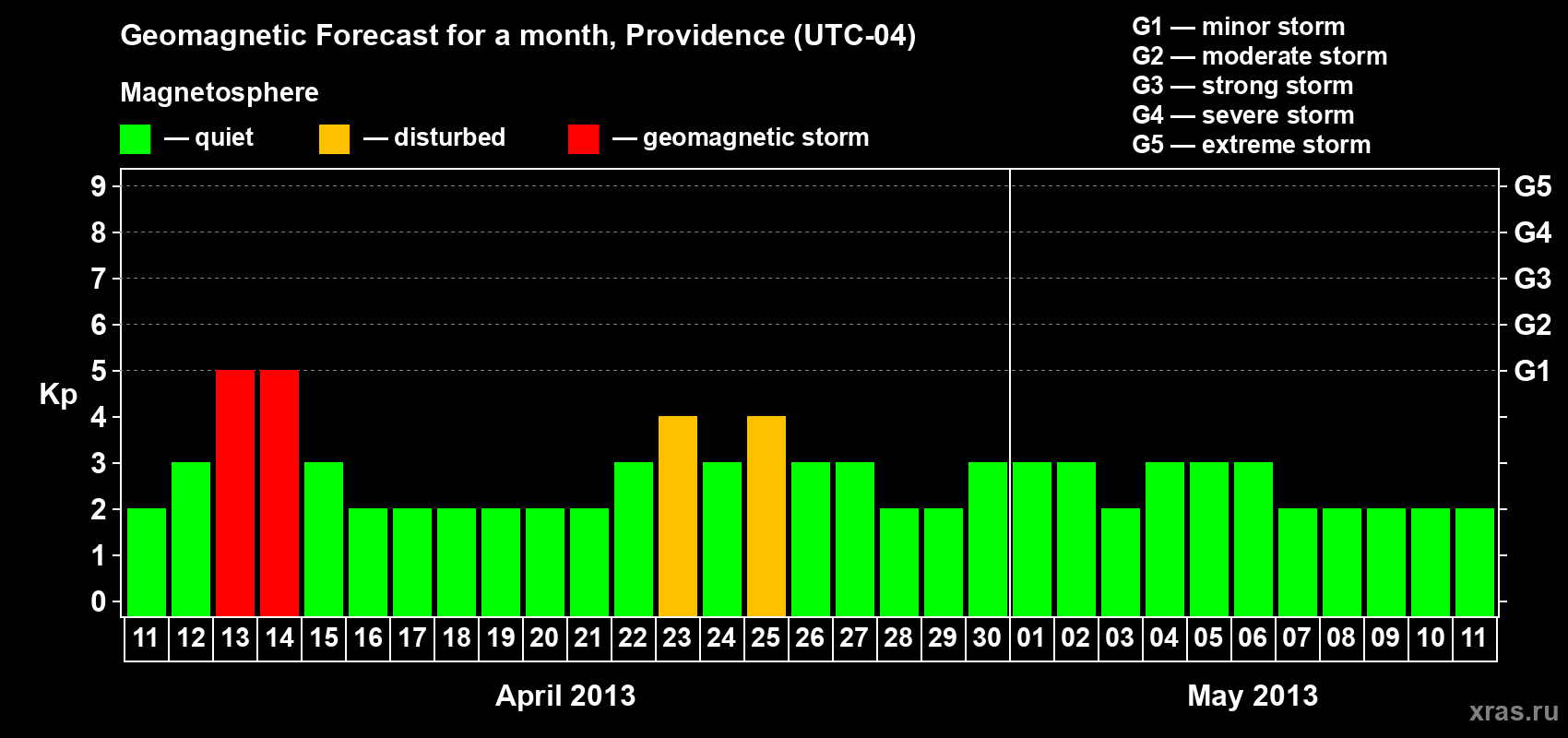 Geomagnetic storm forecast in Providence for Apr 11, 2013
