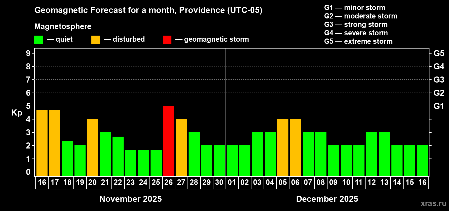 Geomagnetic storm forecast in Providence for Nov 16, 2025
