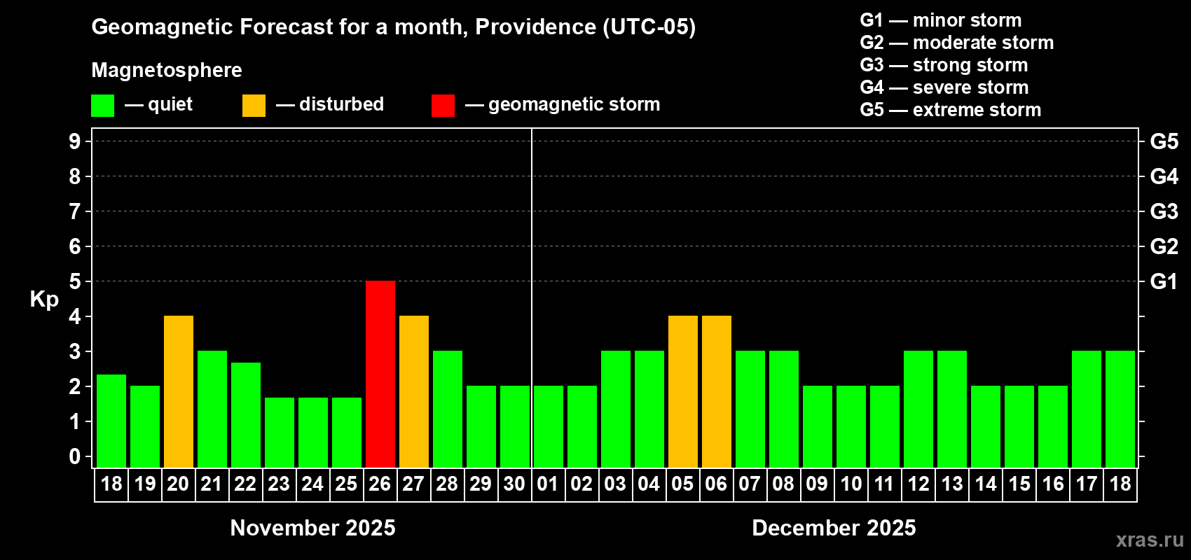 Geomagnetic storm forecast in Providence for Nov 18, 2025