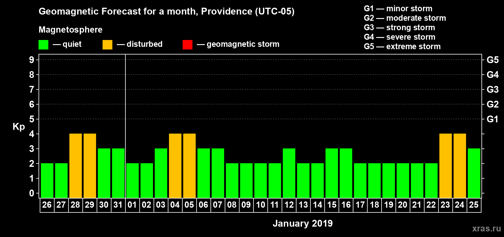 Geomagnetic storm forecast in Providence for Dec 26, 2018