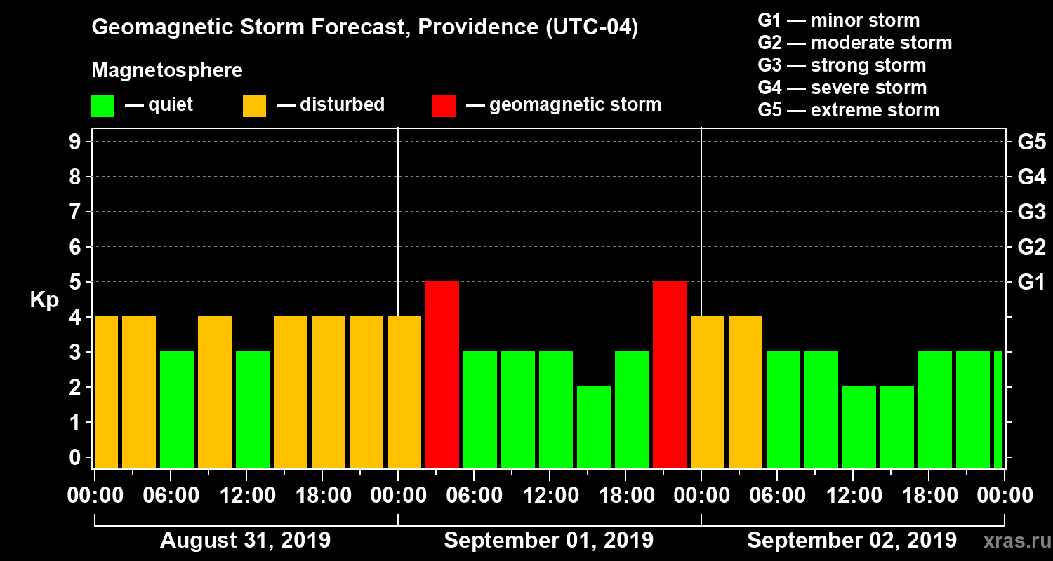 Geomagnetic storm forecast in Providence for Aug 31, 2019