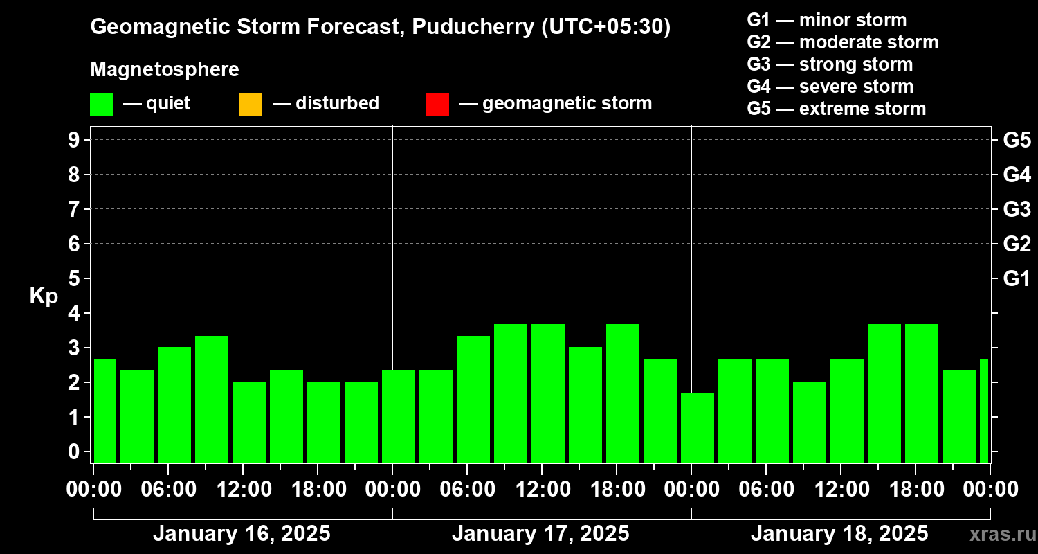 Geomagnetic storm forecast in Puducherry for Jan 16, 2025