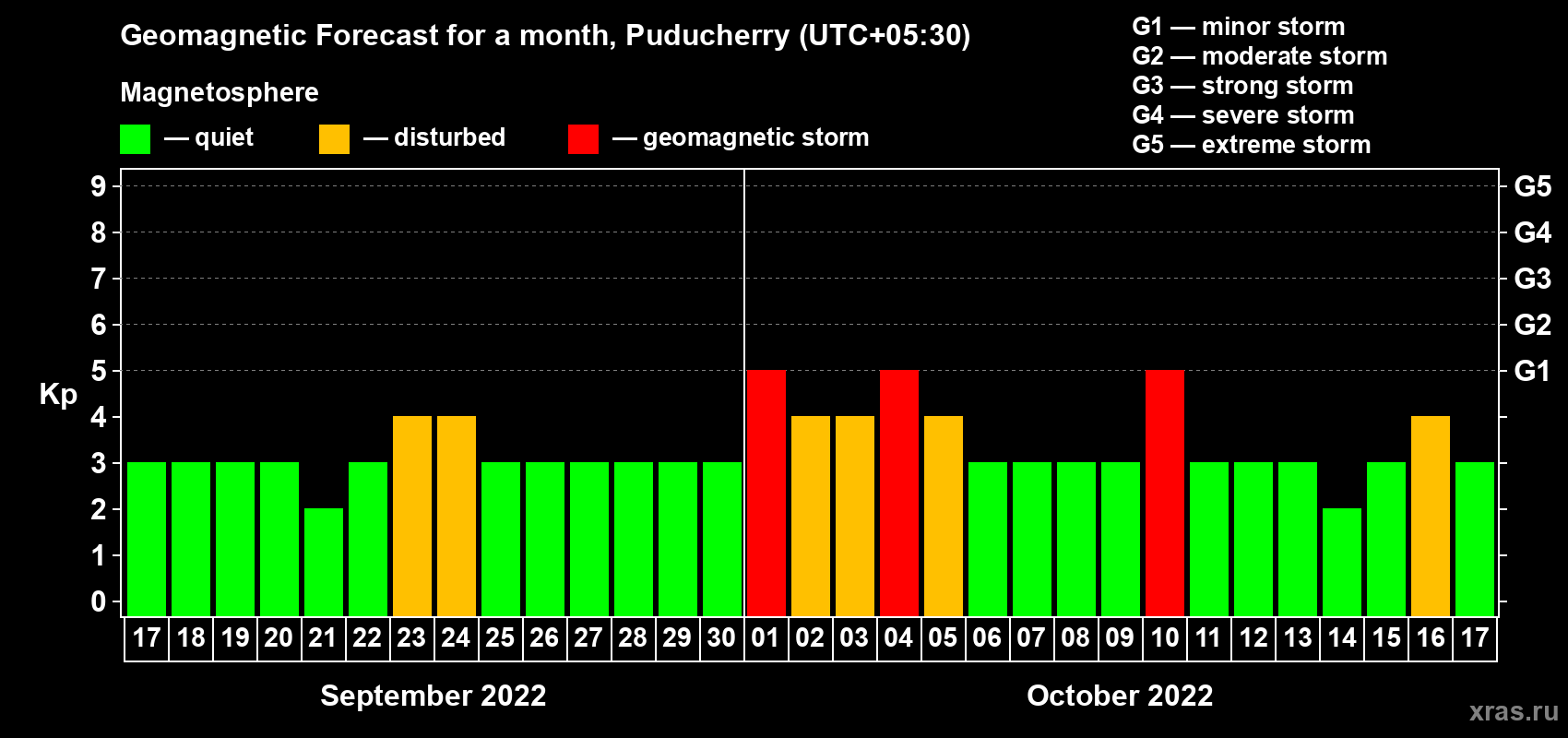 Geomagnetic storm forecast in Puducherry for Sep 17, 2022