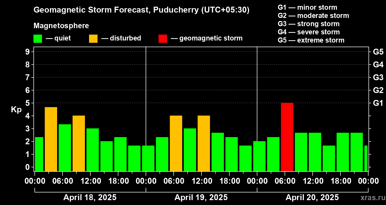 Geomagnetic storm forecast in Puducherry for Apr 18, 2025