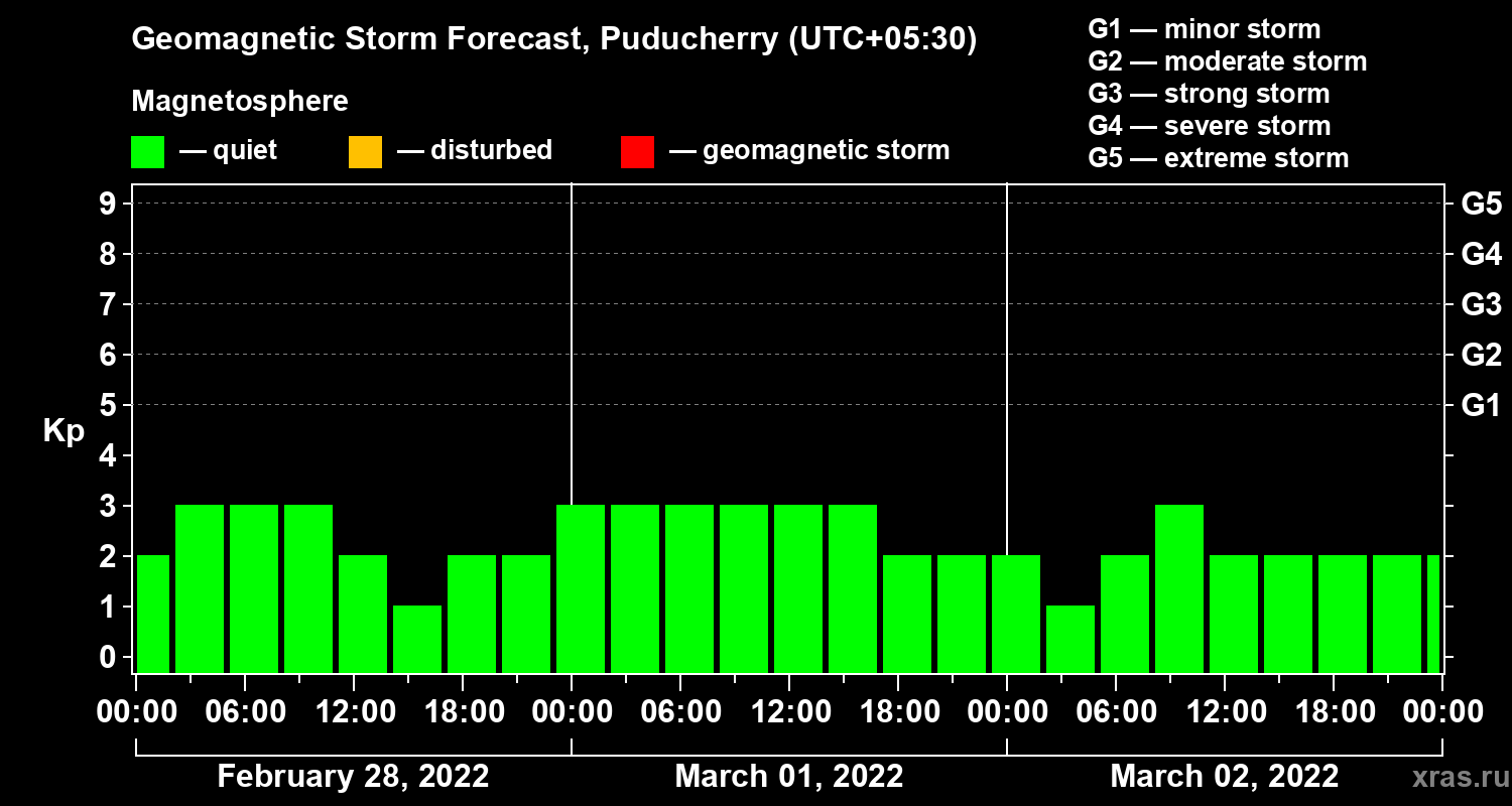 Geomagnetic storm forecast in Puducherry for Feb 28, 2022