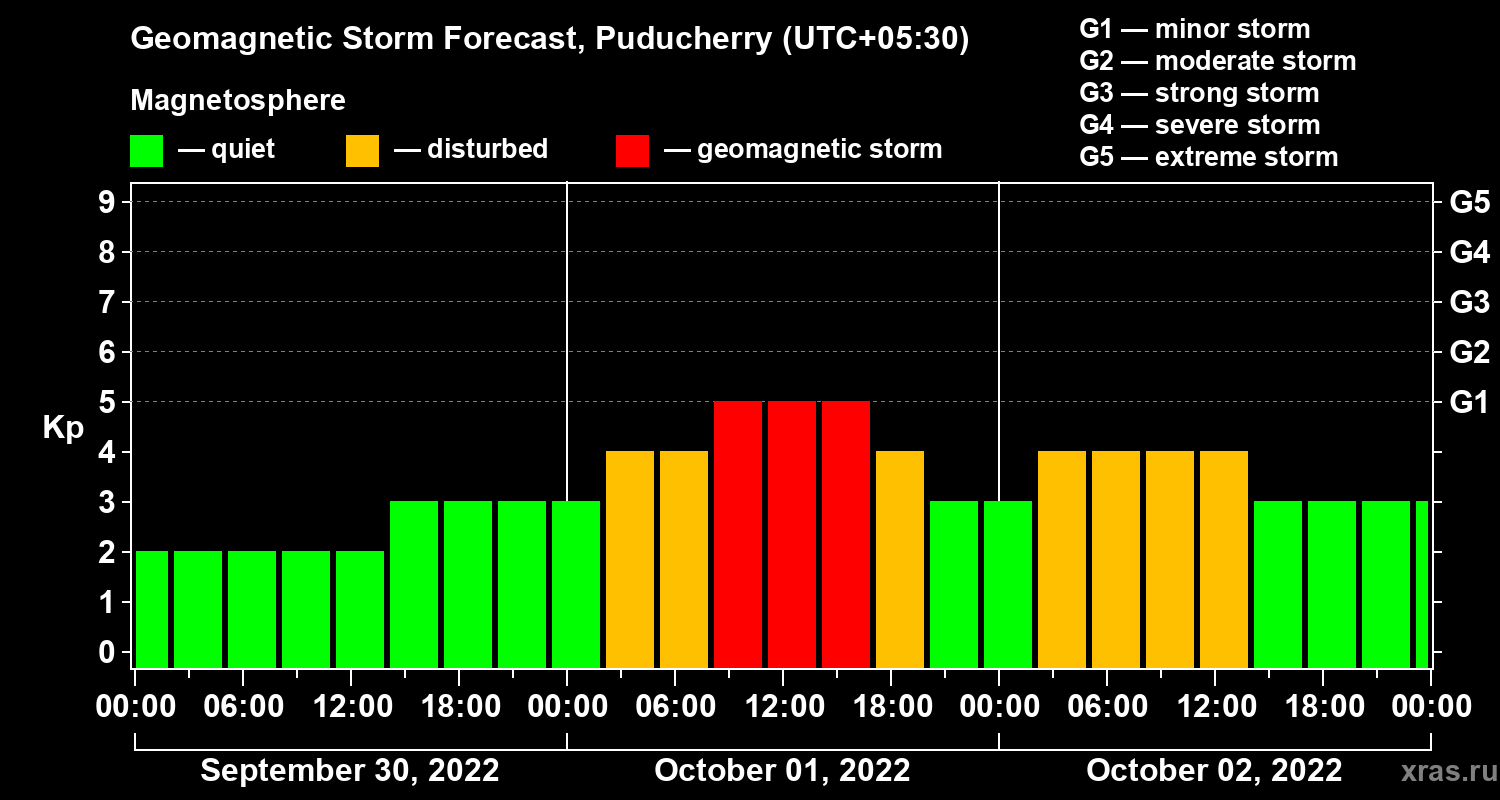 Geomagnetic storm forecast in Puducherry for Sep 30, 2022