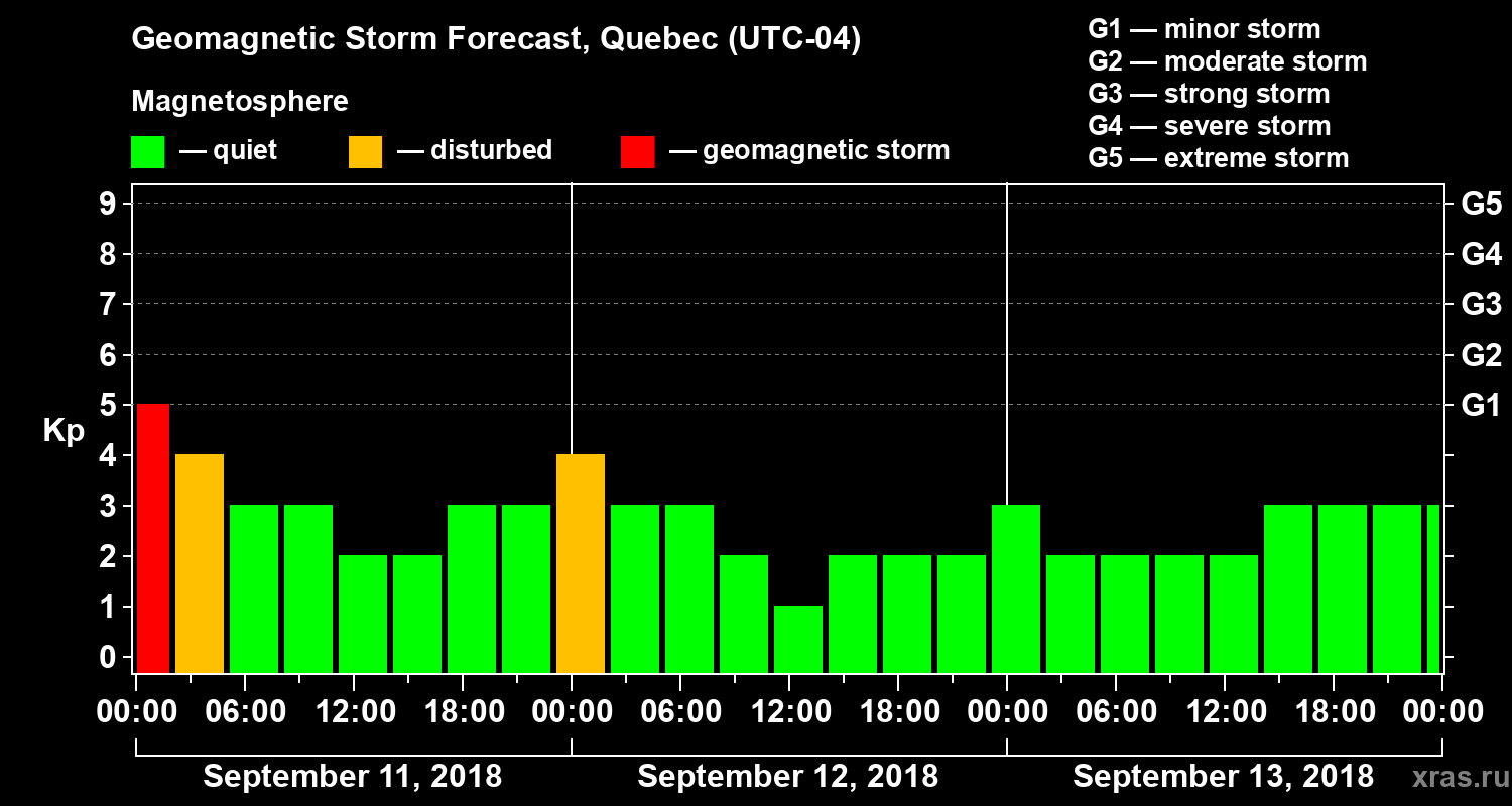 Geomagnetic activity forecast in Quebec — Sep 11, 2018
