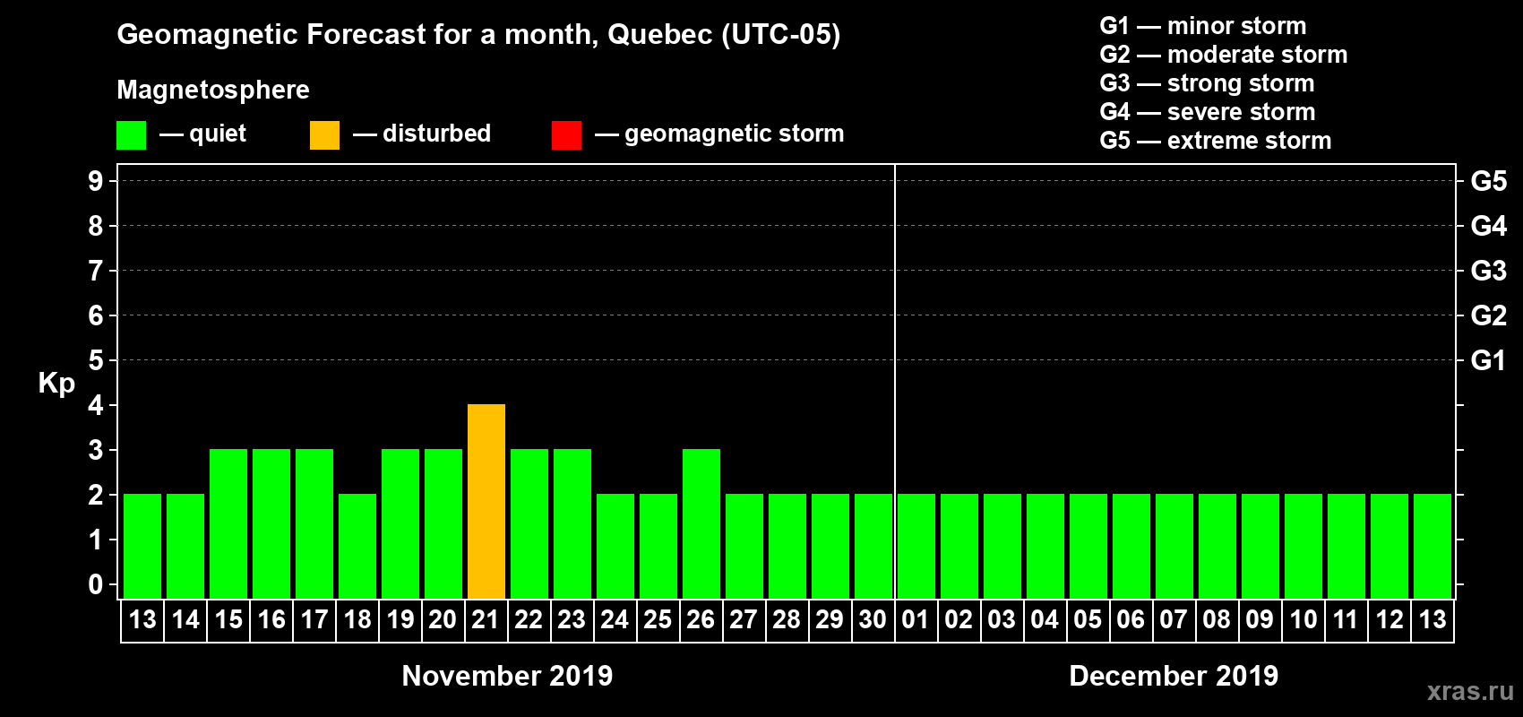 Geomagnetic activity forecast in Quebec — Nov 13, 2019