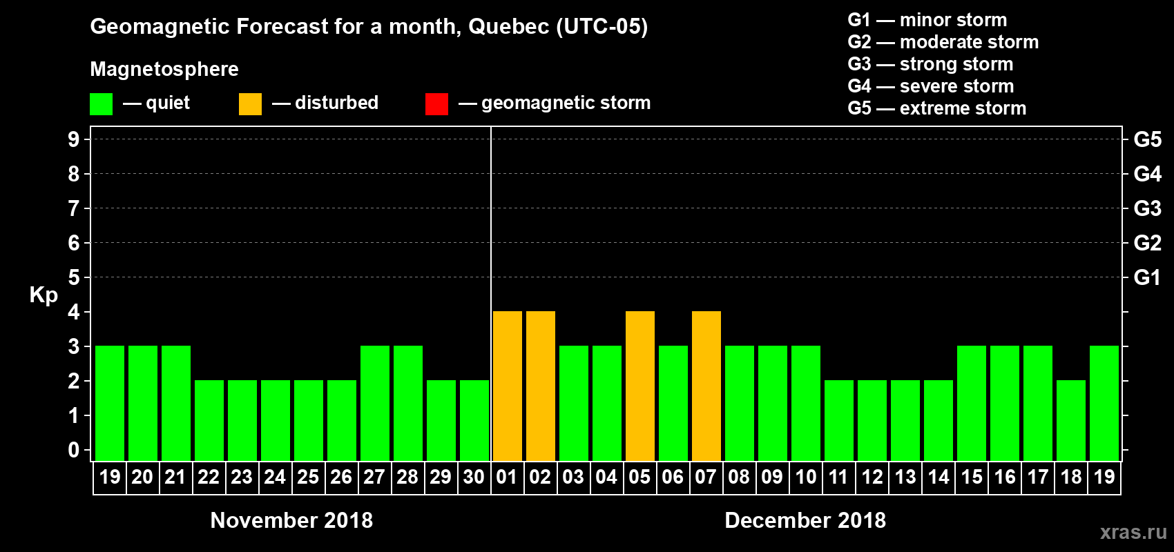 Geomagnetic activity forecast in Quebec — Nov 19, 2018