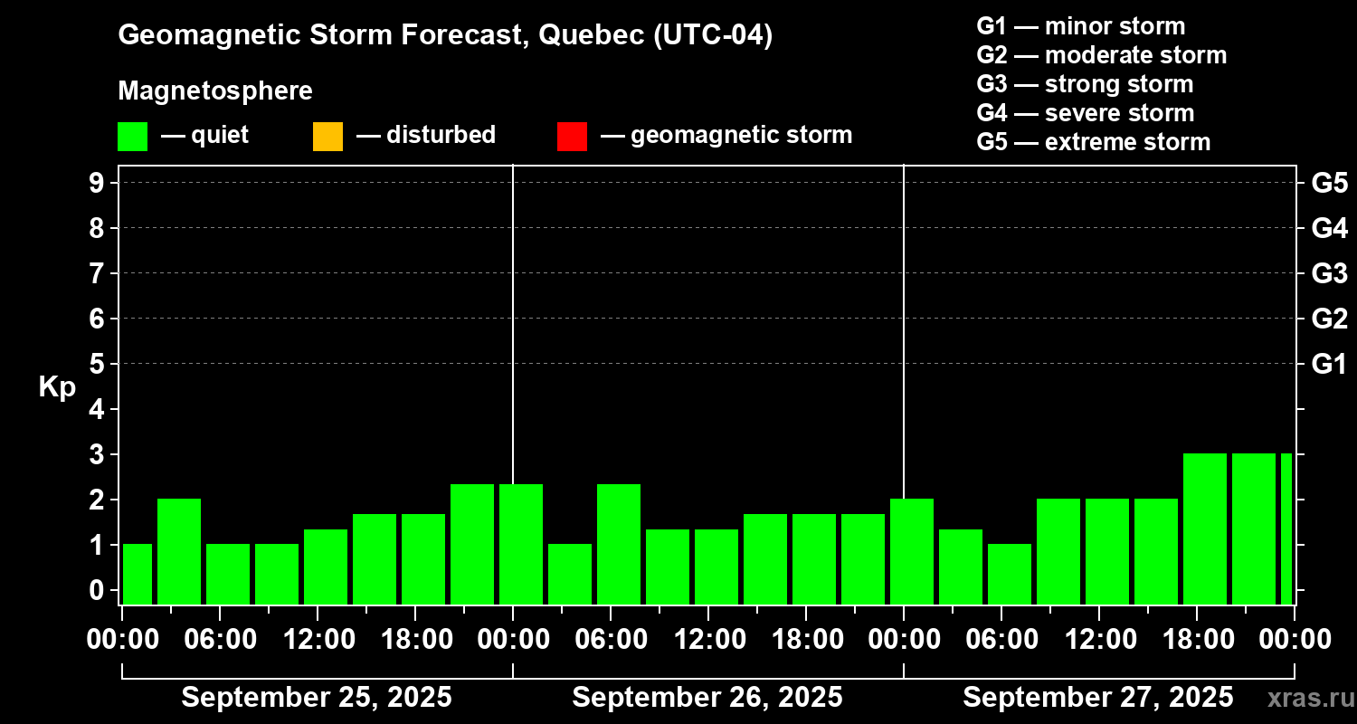 Geomagnetic activity forecast in Quebec — Sep 25, 2025