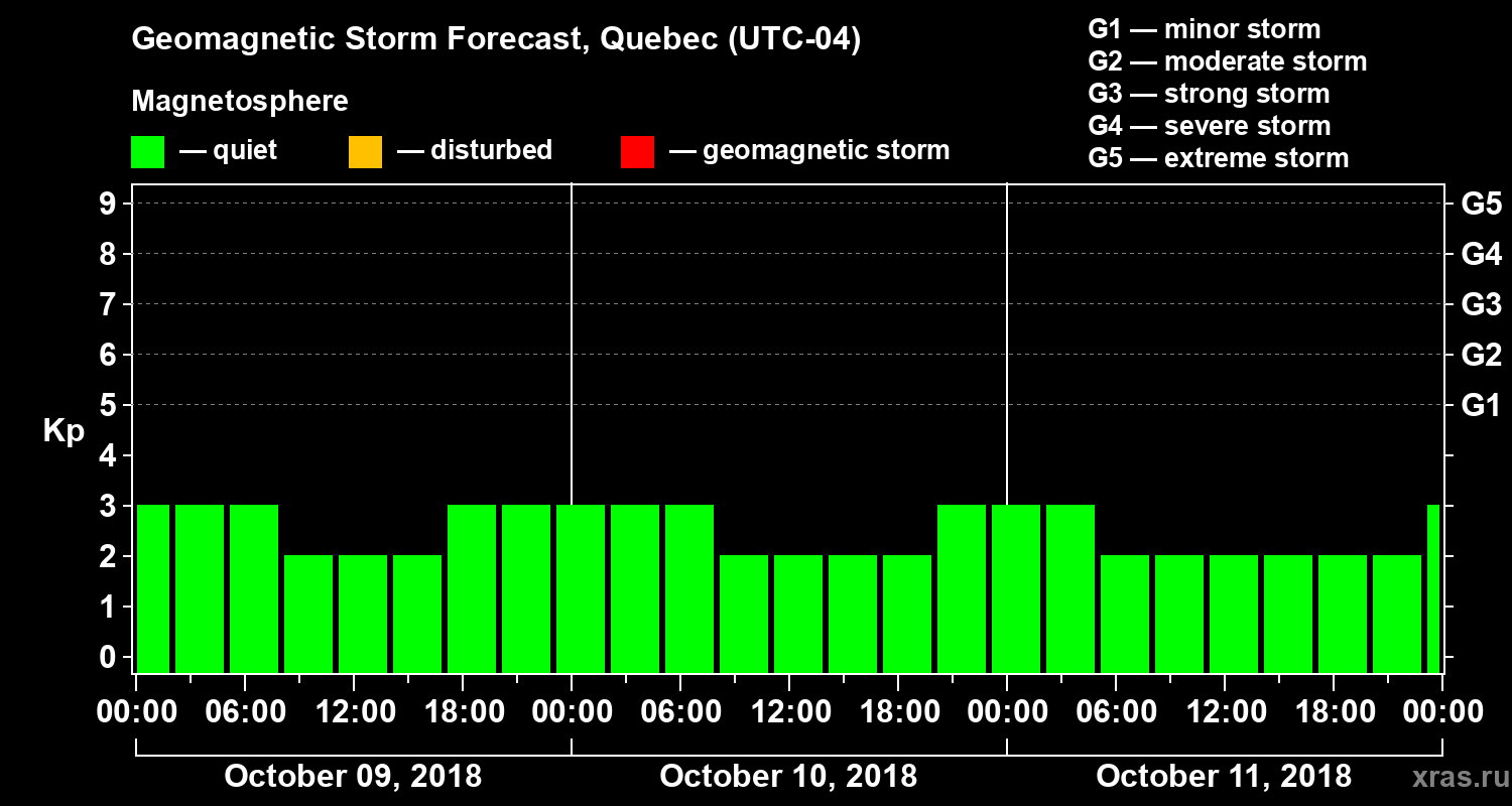 Geomagnetic activity forecast in Quebec — Oct 09, 2018