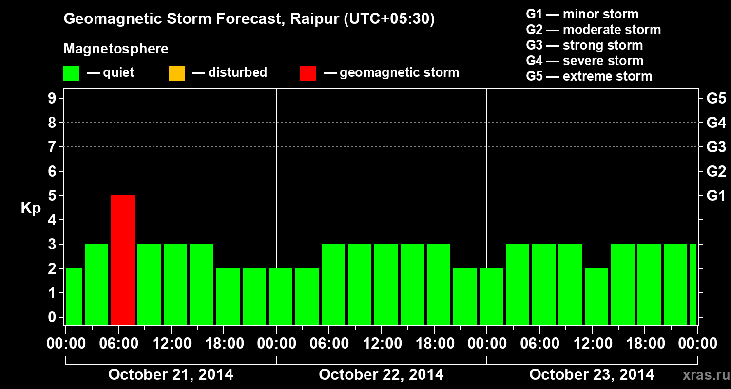 Geomagnetic storm forecast in Raipur for Oct 21, 2014