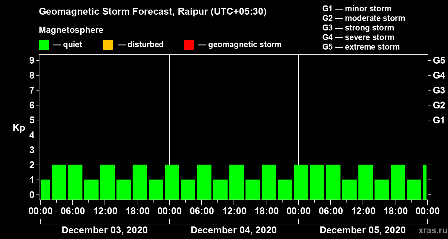 Geomagnetic activity forecast in Raipur — Dec 03, 2020
