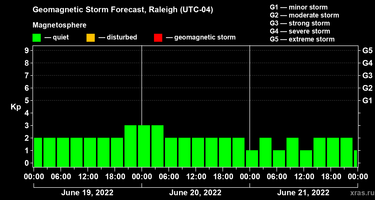 Geomagnetic storm forecast in Raleigh for Jun 19, 2022