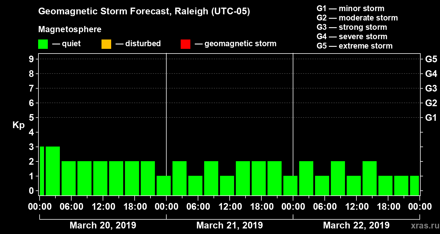 Geomagnetic storm forecast in Raleigh for Mar 20, 2019