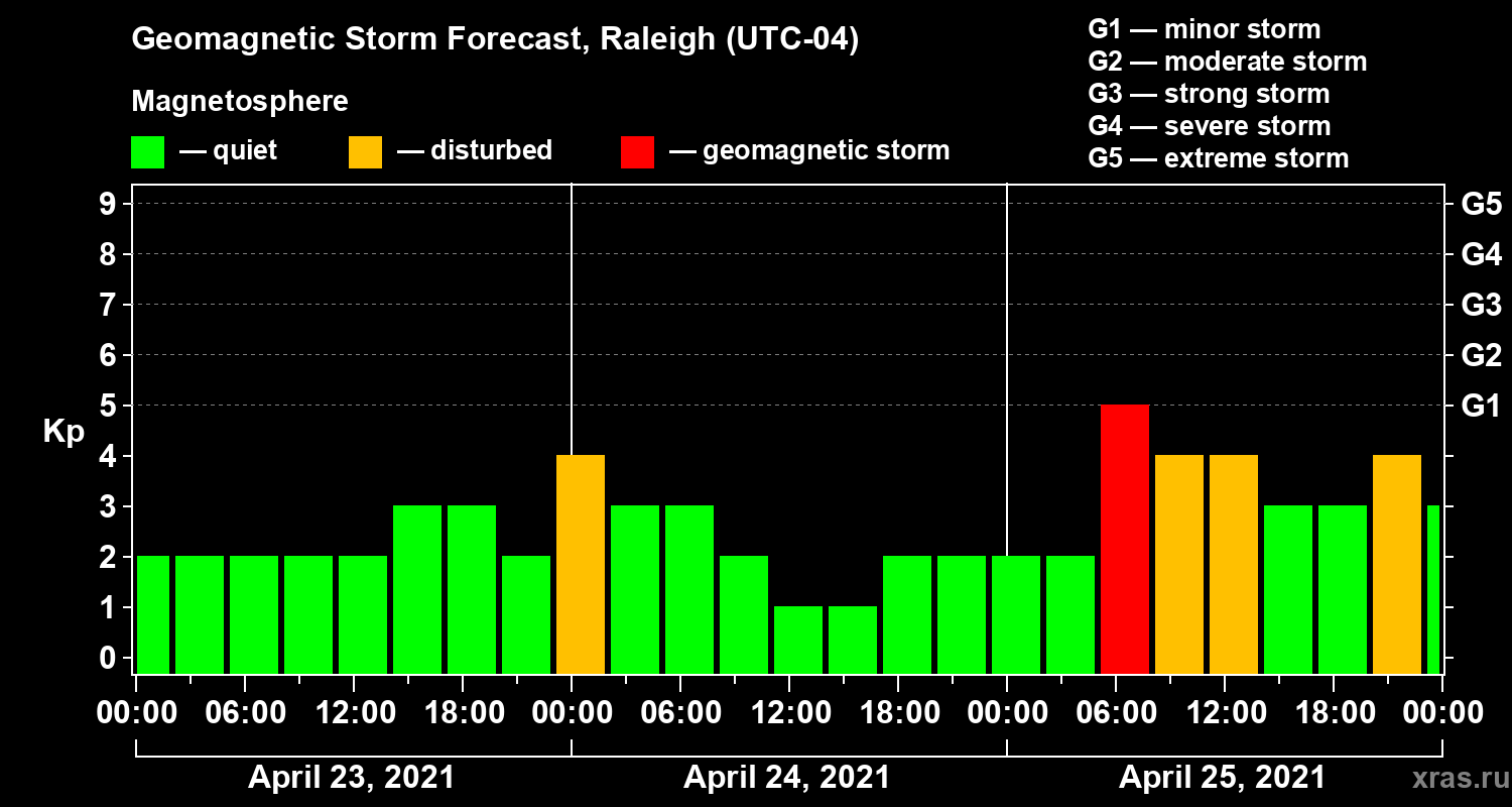 Geomagnetic storm forecast in Raleigh for Apr 23, 2021
