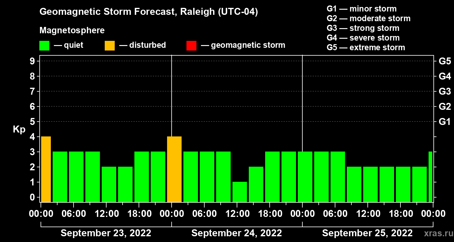 Geomagnetic storm forecast in Raleigh for Sep 23, 2022