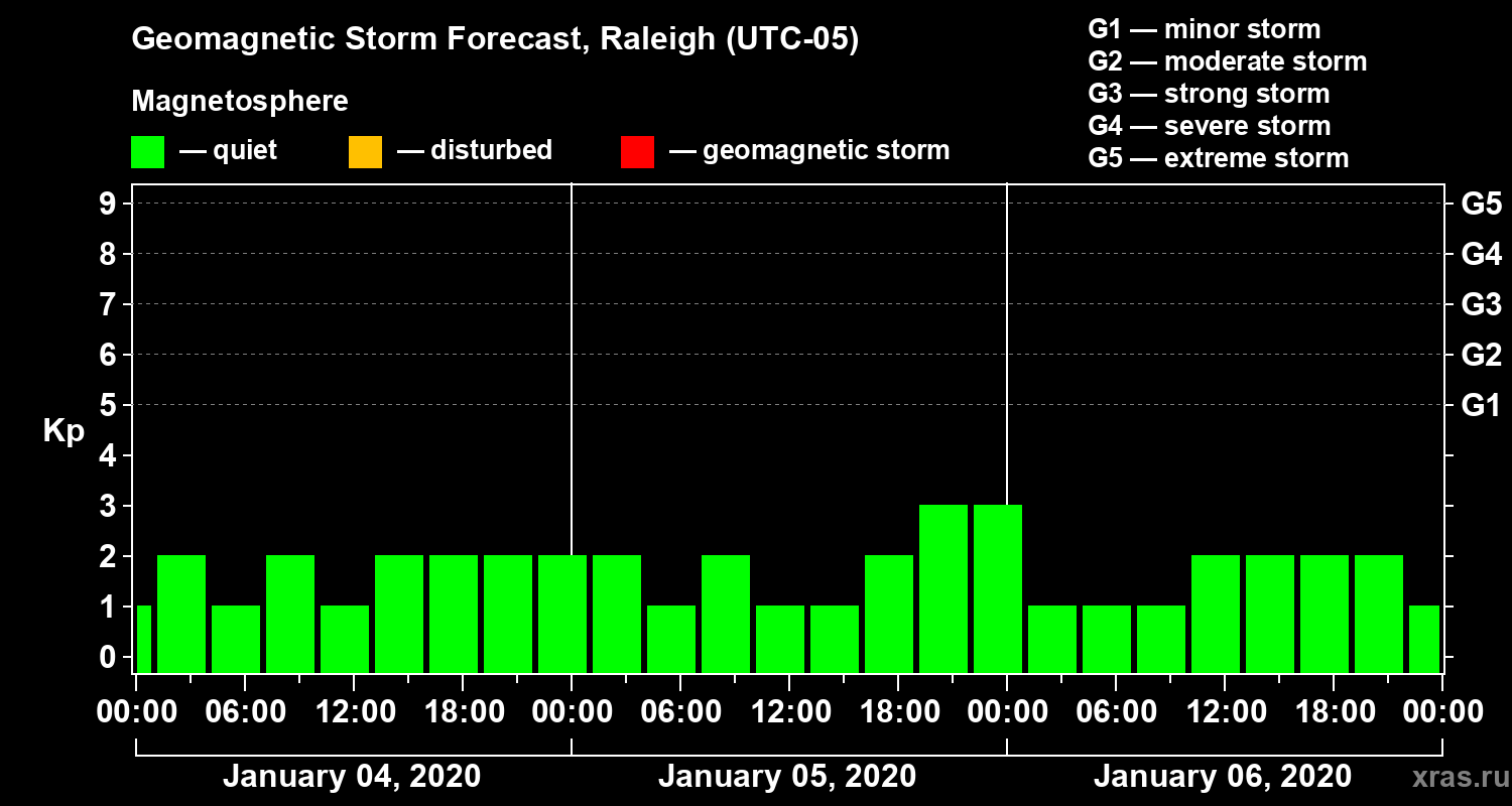 Geomagnetic storm forecast in Raleigh for Jan 04, 2020