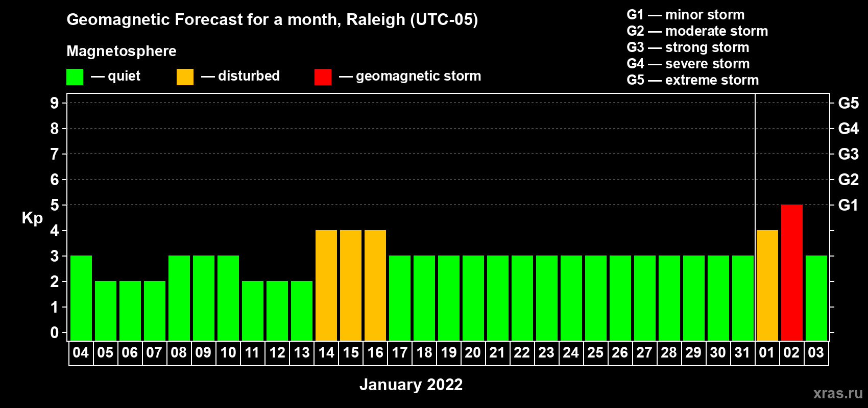 Geomagnetic storm forecast in Raleigh for Jan 04, 2022
