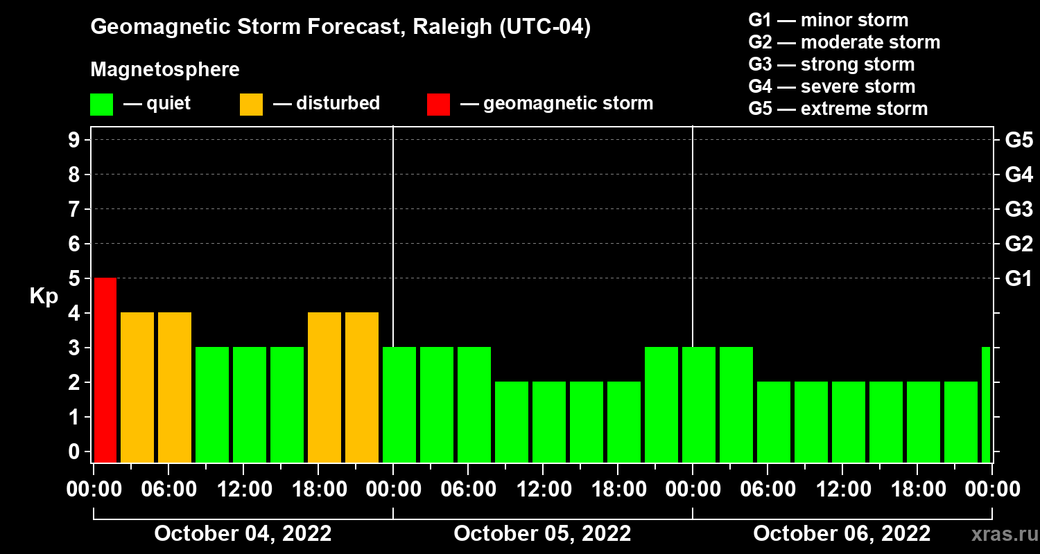 Geomagnetic storm forecast in Raleigh for Oct 04, 2022