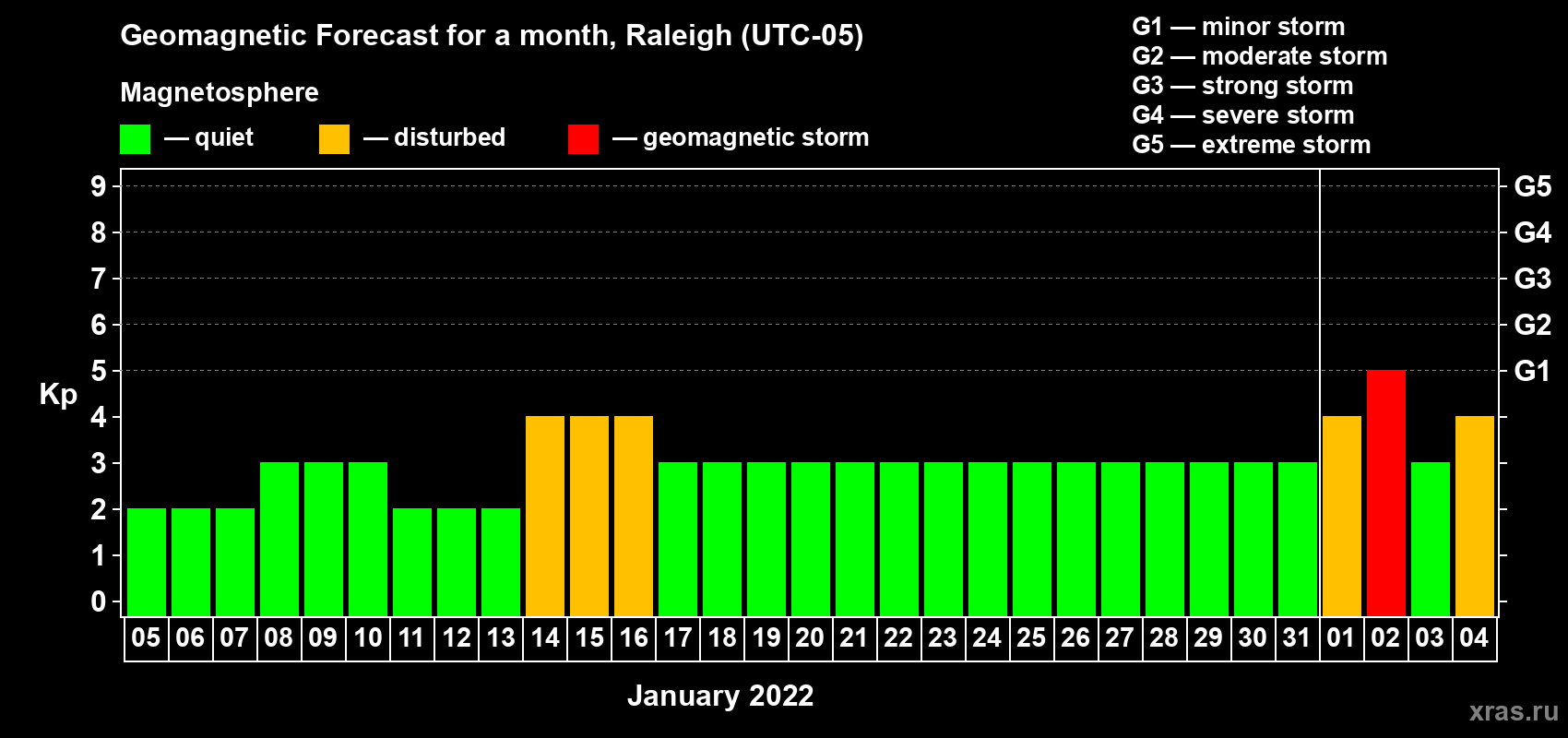 Geomagnetic storm forecast in Raleigh for Jan 05, 2022
