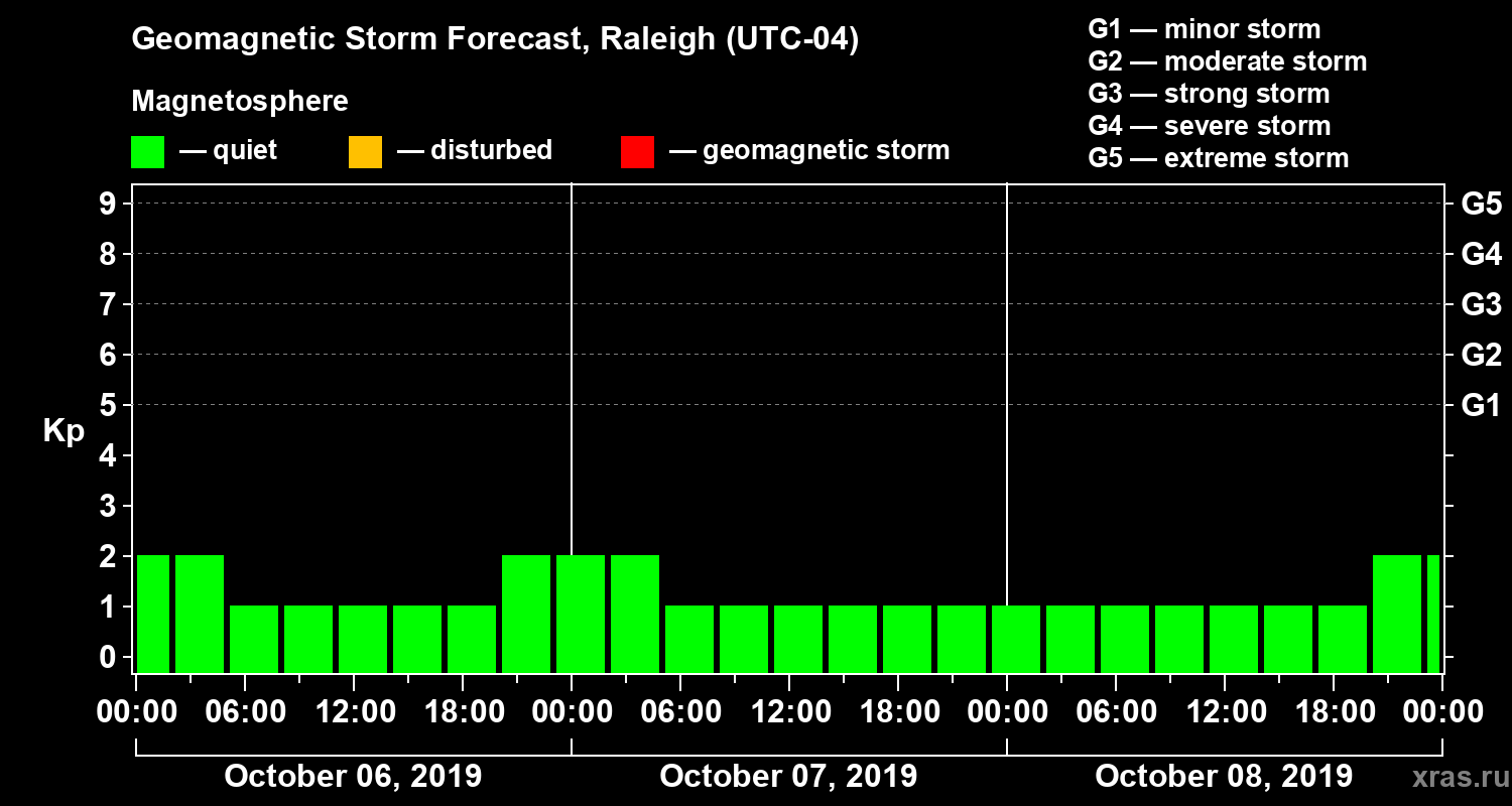 Geomagnetic storm forecast in Raleigh for Oct 06, 2019