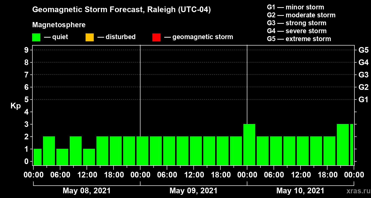 Geomagnetic activity forecast in Raleigh — May 08, 2021