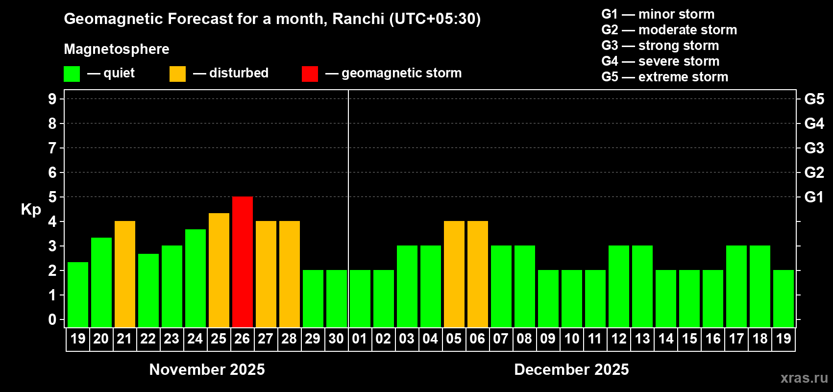 Geomagnetic storm forecast in Ranchi for Nov 19, 2025