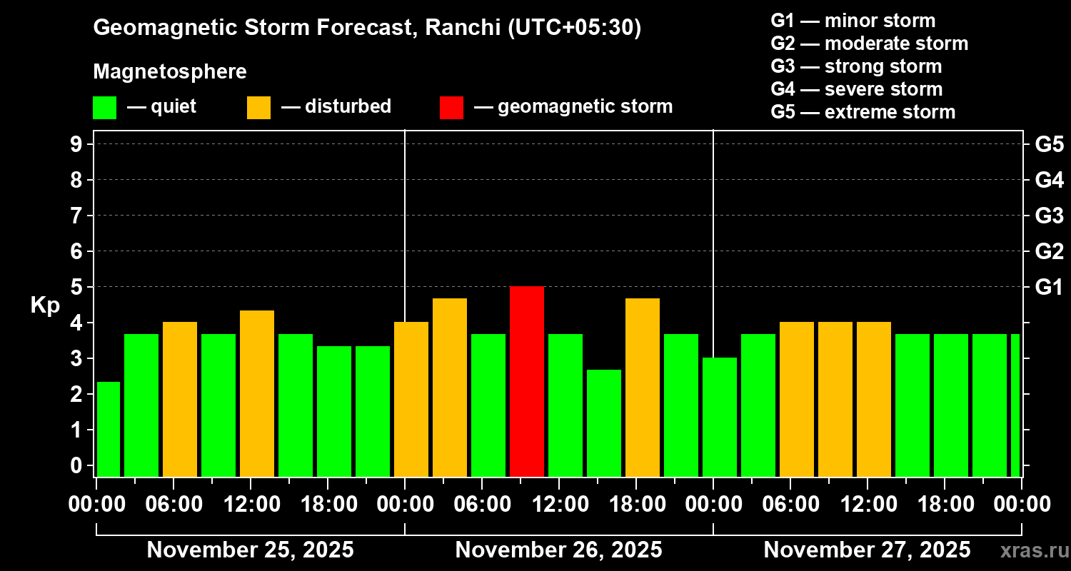 Geomagnetic storm forecast in Ranchi for Nov 25, 2025