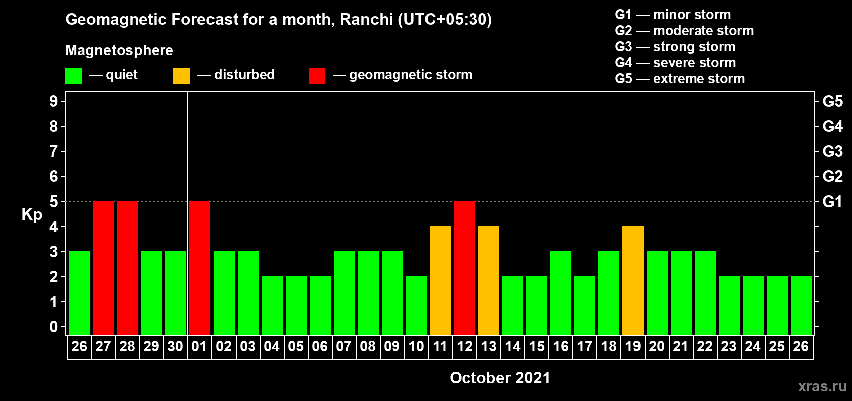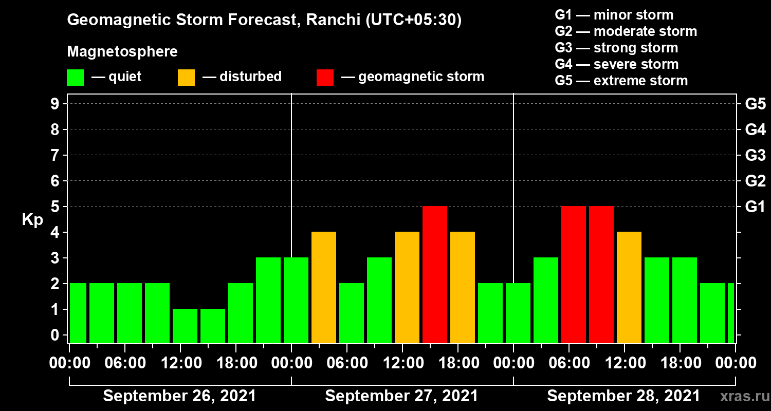 Geomagnetic storm forecast in Ranchi for Sep 26, 2021