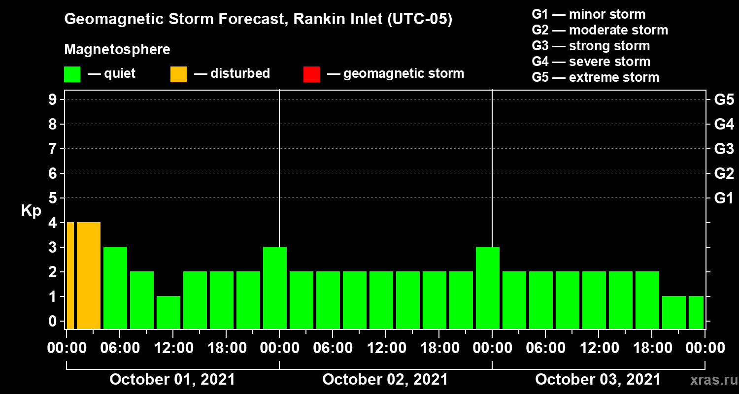 Geomagnetic storm forecast in Rankin Inlet for Oct 01, 2021