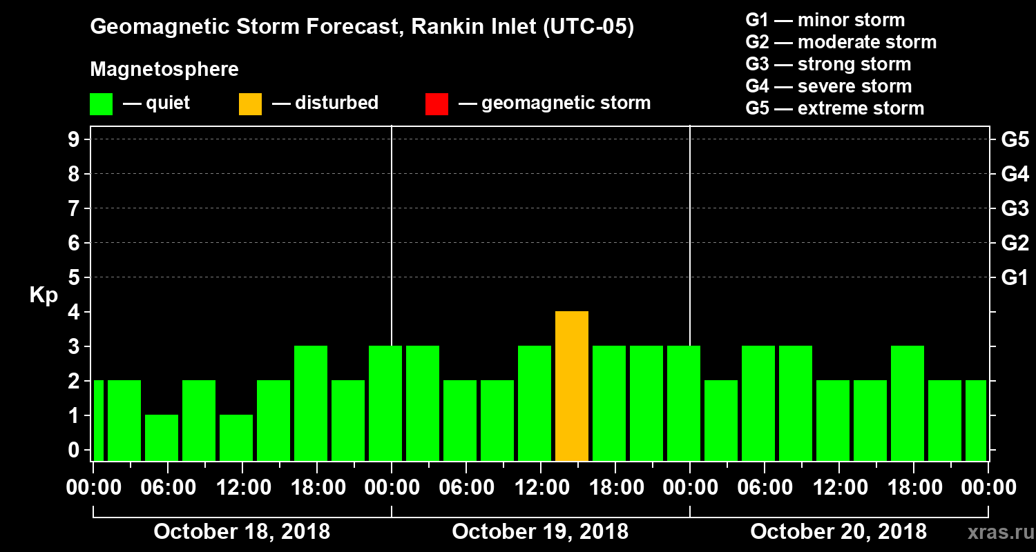 Geomagnetic storm forecast in Rankin Inlet for Oct 18, 2018