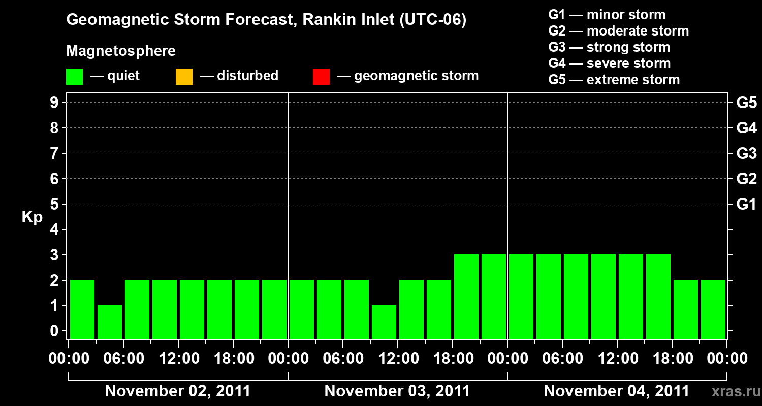 Geomagnetic storm forecast in Rankin Inlet for Nov 02, 2011